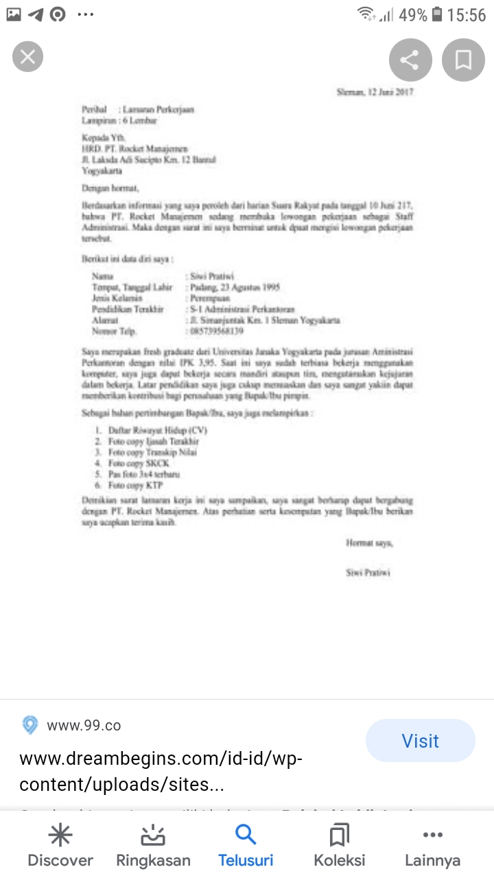 Membuat surat lowongan kerja sangat baik jika melampirkan sumber informasi lowongan pekerjaan.